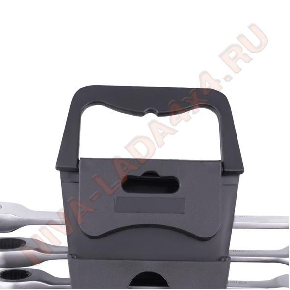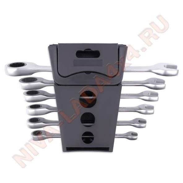 Набор комбинированных гаечных ключей из хромованадиевой стали с 72-зубцовым храповым механизмом в накидной части. Применяется при работе с резьбовыми соединениями. Благодаря наличию трещотки, ключ ускоряет отворачивание и заворачивание крепежа как в обычных условиях, так и в условиях ограниченного пространства. Сатиновое покрытие трещоточного ключа обеспечивает ему дополнительную антикоррозионную стойкость.