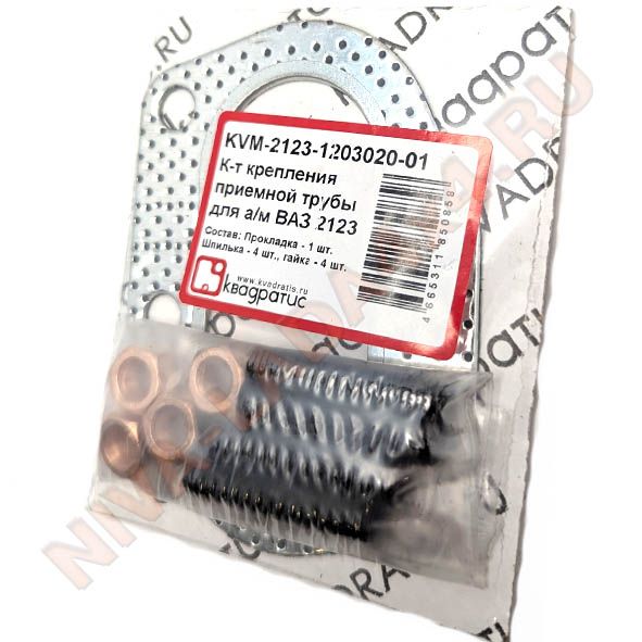 Комплект крепления приёмной трубы для НИВА Шевроле 2123-1203020; НИВА 21214i ЕВРО 3; 4; 5В комплекте прокладка приемной трубы, шпильки, гайкиKVM-2123-1203020-01