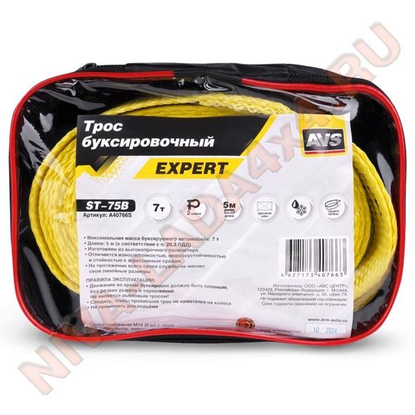 Трос буксировочный (усиленный) 7 т 5 м шаклы (сумка) AVS EXPERT ST-75B